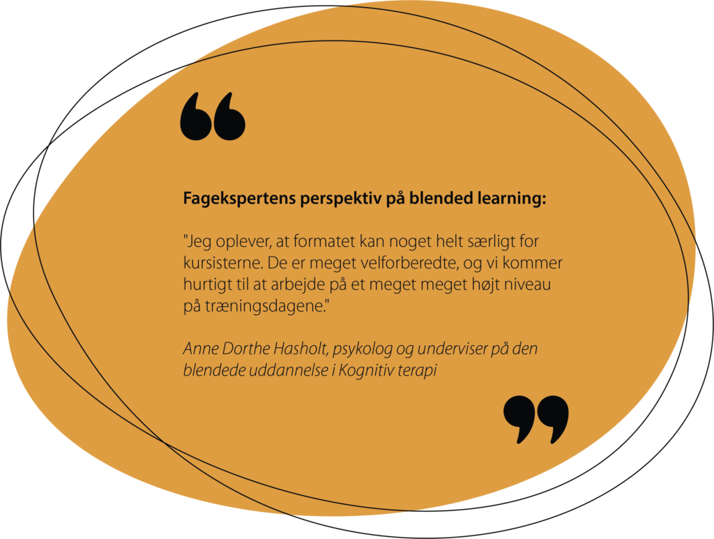 Nogle mennesker har det bedst med at efteruddanne sig ved at sidde i et kursuslokale sammen med kolleger og undervisere, hvor det handler om at lytte, reflektere og diskutere. Andre foretrækker at fordybe sig foran computeren med e-learning, når det passer ind i programmet. Med blended learning kombineres det bedste fra begge verdener.