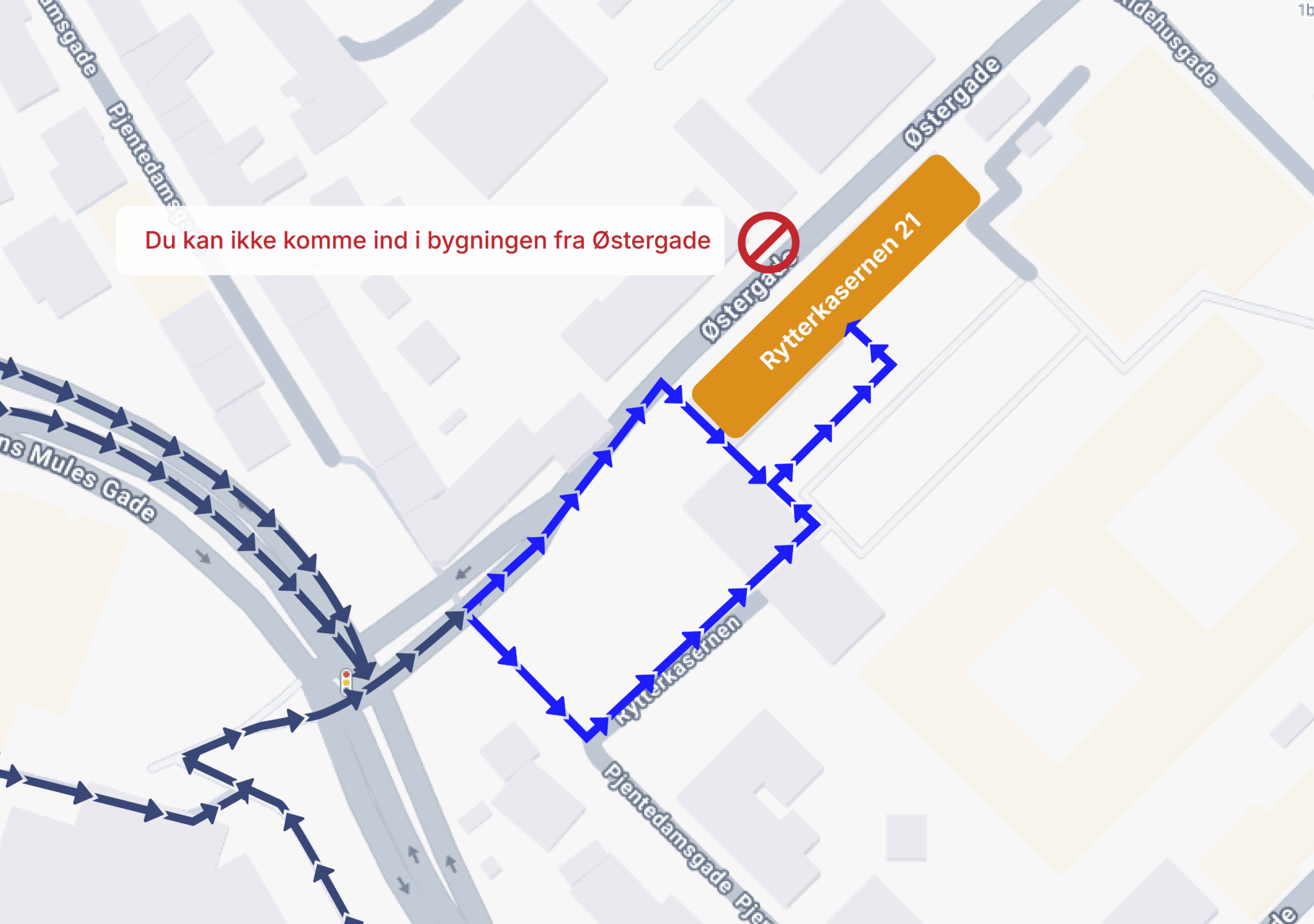Se evt. videoen længere nede på siden, og find nemt vej. Du kan også tage et kig på kortet herunder for at se nogle af de mest almindelige ruter til Rytterkasernen (klik på kortet for at se det i større version)